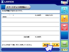 | 選択した請求情報を再度ご確認の上、「了解」ボタンをおしてください。 申込券が発券されますので、申込券をお取りになり、レジでお支払いください。 |