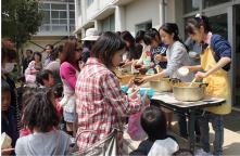 こいのぼりをロープに着ける作業が終わると、その後にはトン汁が出ます。